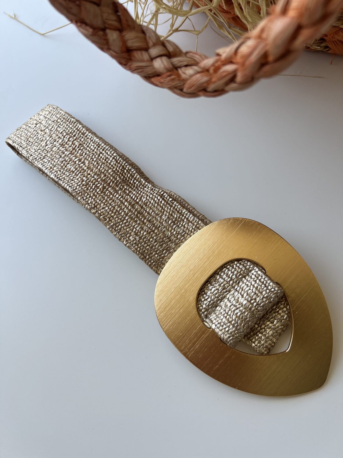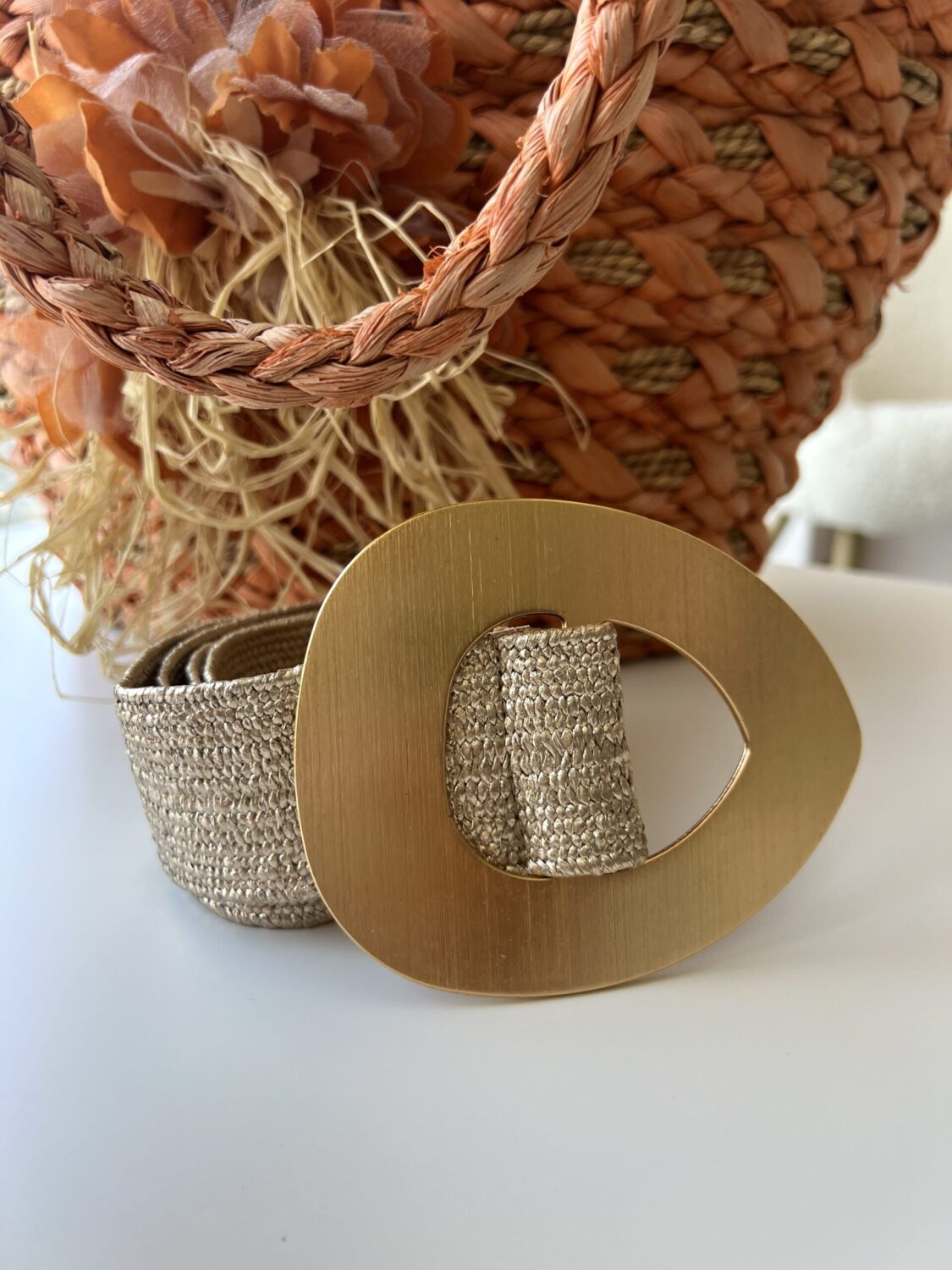 Летният колан със златиста тока е стилен и елегантен аксесоар, който добавя нотка изтънченост към всяко облекло.