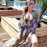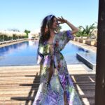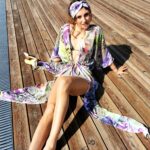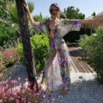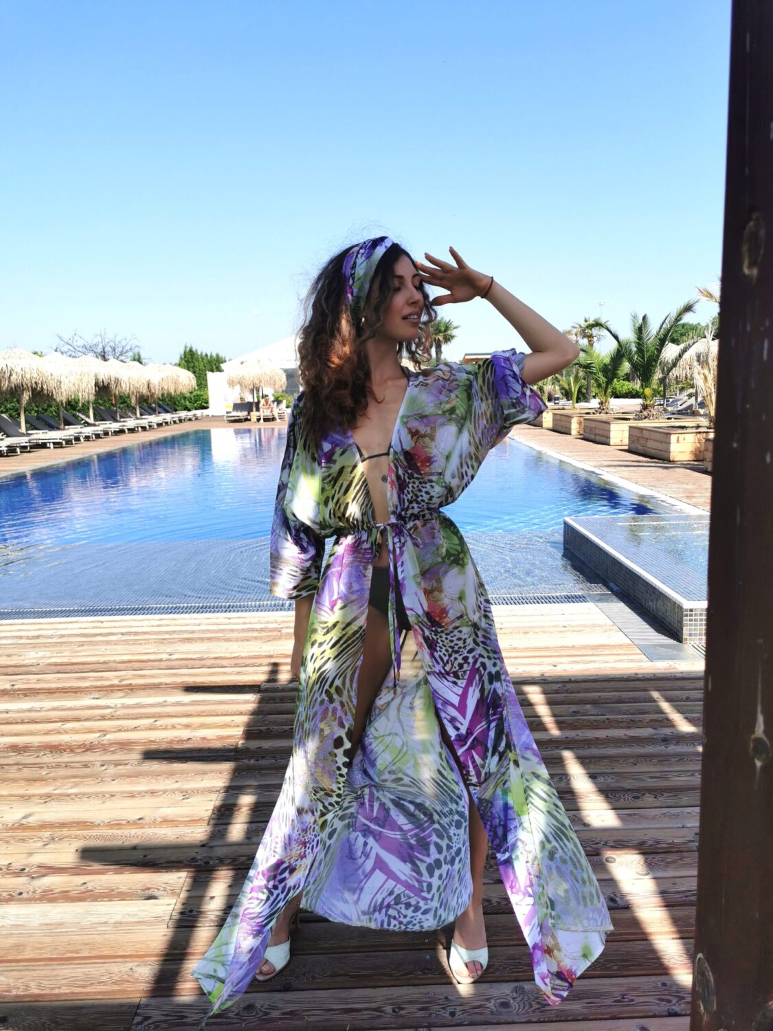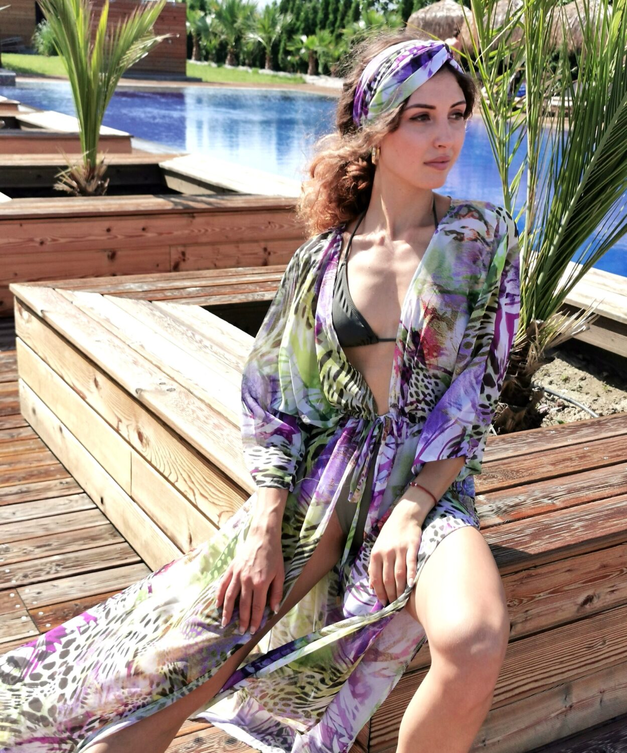 Парео с кимоно ръкав, вграден колан със златисти висулки.