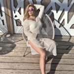Моделът е висок 169см. с размери 99/78/98 и позира с размер “L”