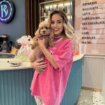 Моделът е с мерки 85/65/92 и позира с размер „М“.